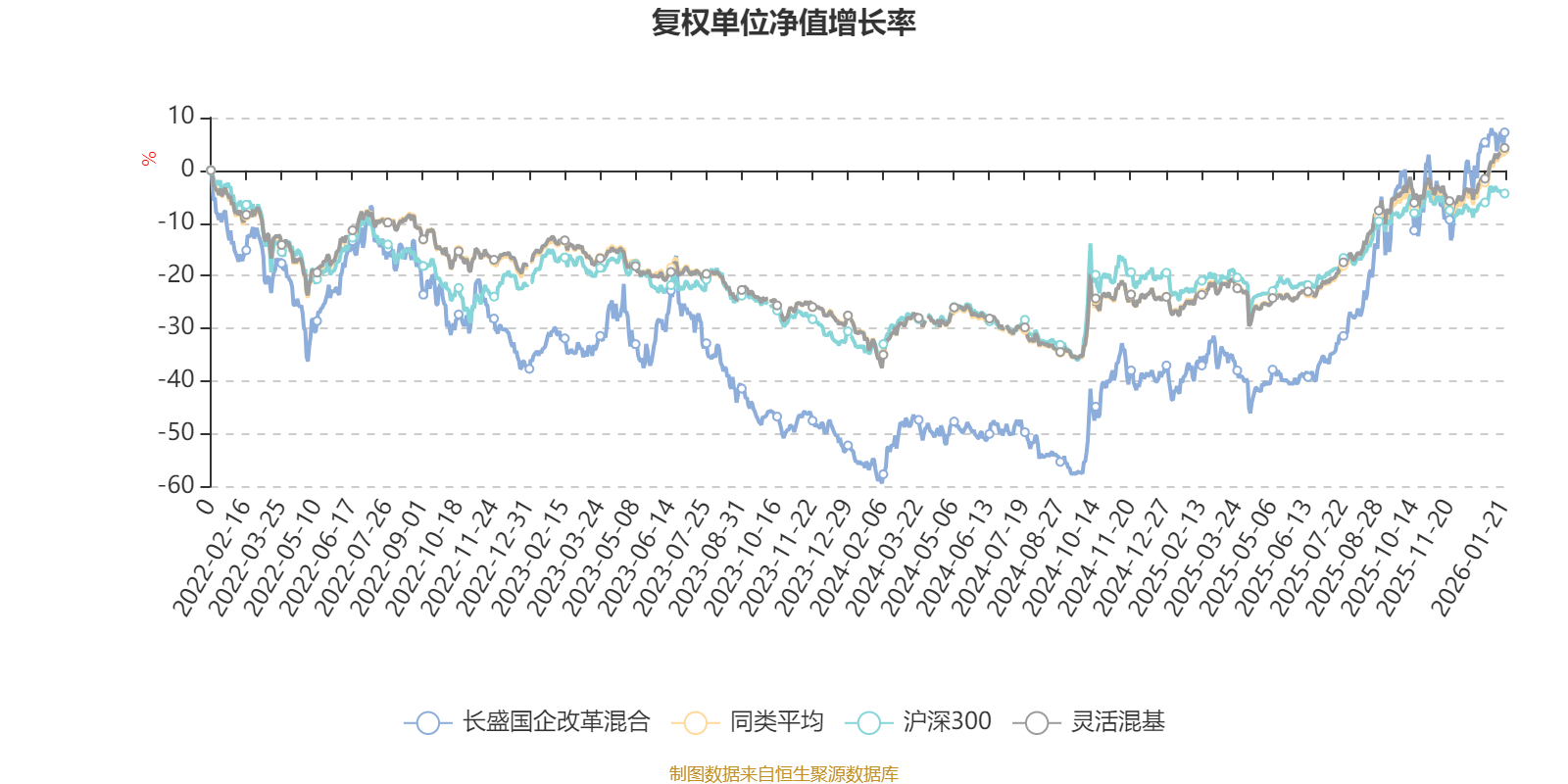 截至1月21日,長盛國企改革混合近三個月復(fù)權(quán)單位凈值增長率為14.72%,位于同類可比基金262/1286;近半年復(fù)權(quán)單位凈值增長率為55.56%,位于同類可比基金107/1286;近一年復(fù)權(quán)單位凈值增長率為70.22%,位于同類可比基金120/1286;近三年復(fù)權(quán)單位凈值增長率為56.26%,位于同類可比基金142/1286。