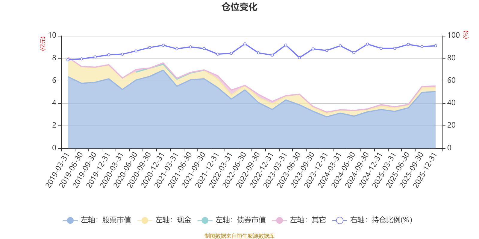 據(jù)定期報告數(shù)據(jù)統(tǒng)計,近三年平均股票倉位為89.04%,同類平均為72.57%。2022年上半年末基金達(dá)到92.84%的最高倉位,2019年一季度末最低,為78.7%。