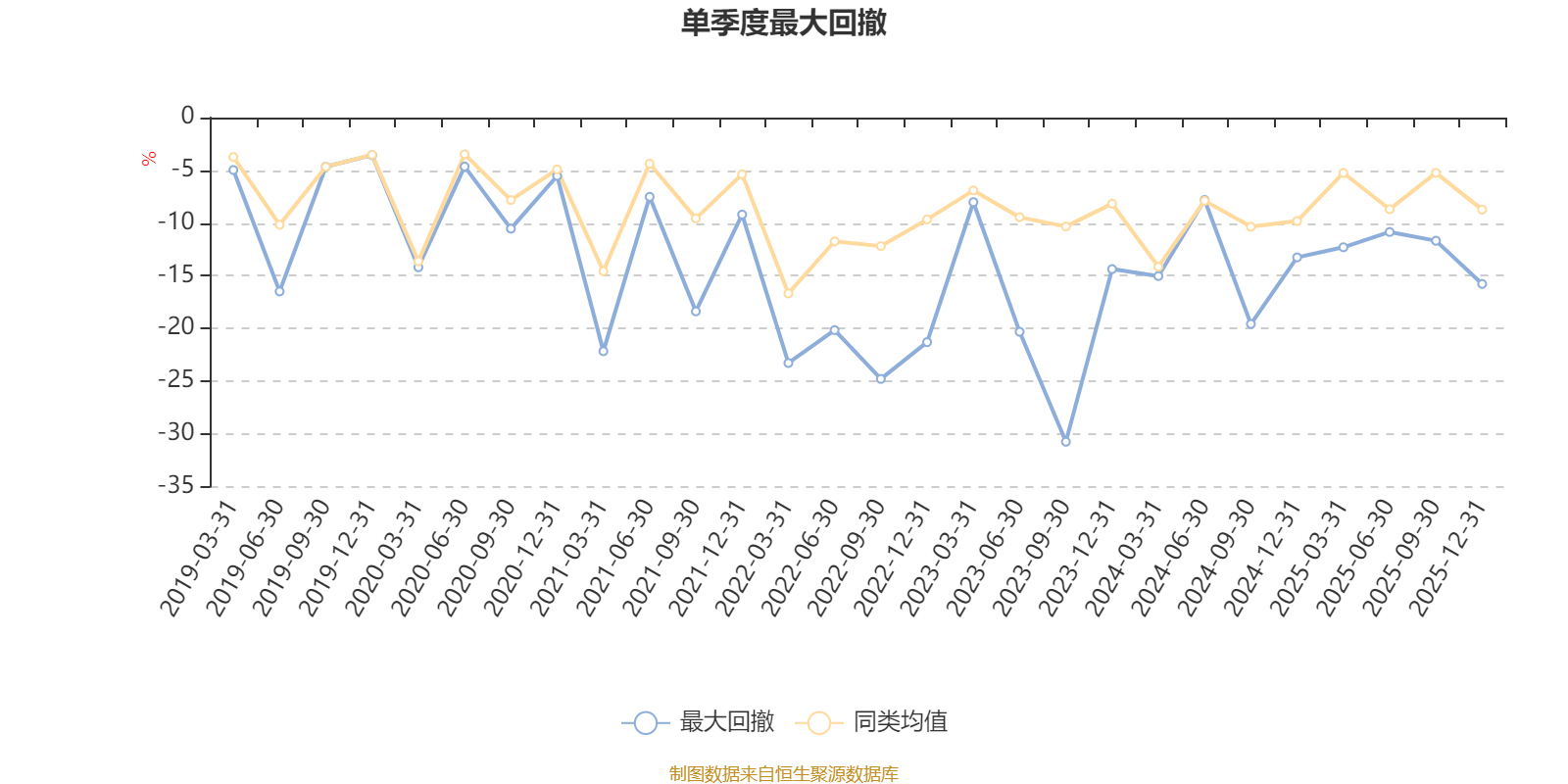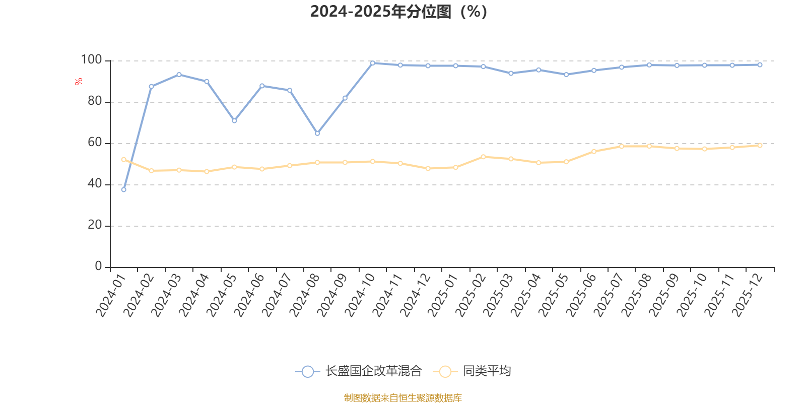 通過所選區(qū)間該基金凈值增長率分位圖,可以觀察該基金與同類基金業(yè)績比較情況。圖為坐標(biāo)原點到區(qū)間內(nèi)某時點的凈值增長率在同類基金中的分位數(shù)。