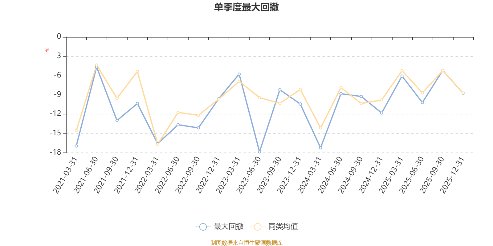 通過所選區(qū)間該基金凈值增長率分位圖,可以觀察該基金與同類基金業(yè)績比較情況。圖為坐標原點到區(qū)間內某時點的凈值增長率在同類基金中的分位數(shù)。