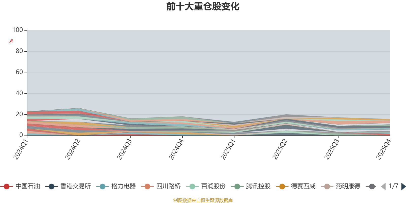 截至2025年四季度末,基金十大重倉(cāng)股分別是寧德時(shí)代、招商銀行、中國(guó)平安、交通銀行、中際旭創(chuàng)、工業(yè)富聯(lián)、紫金礦業(yè)、貴州茅臺(tái)、方正證券、伊利股份。