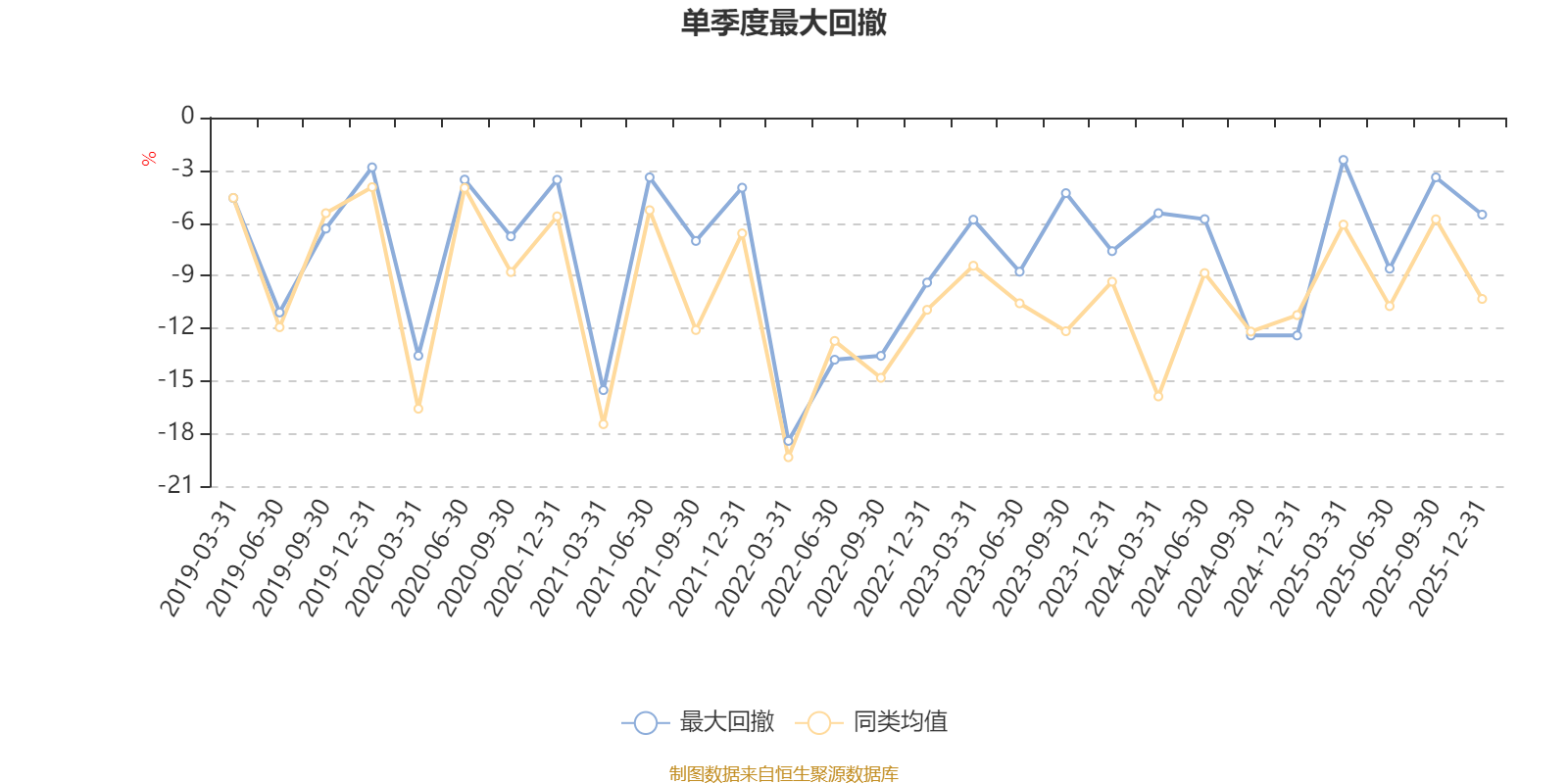 截至1月21日,基金近三年最大回撤為15.99%,同類(lèi)可比基金排名5/378。單季度最大回撤出現(xiàn)在2022年一季度,為18.4%。