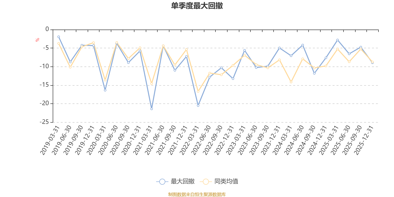 截至1月22日,基金近三年最大回撤為25.4%,同類可比基金排名396/1263。單季度最大回撤出現(xiàn)在2021年一季度,為21.39%。