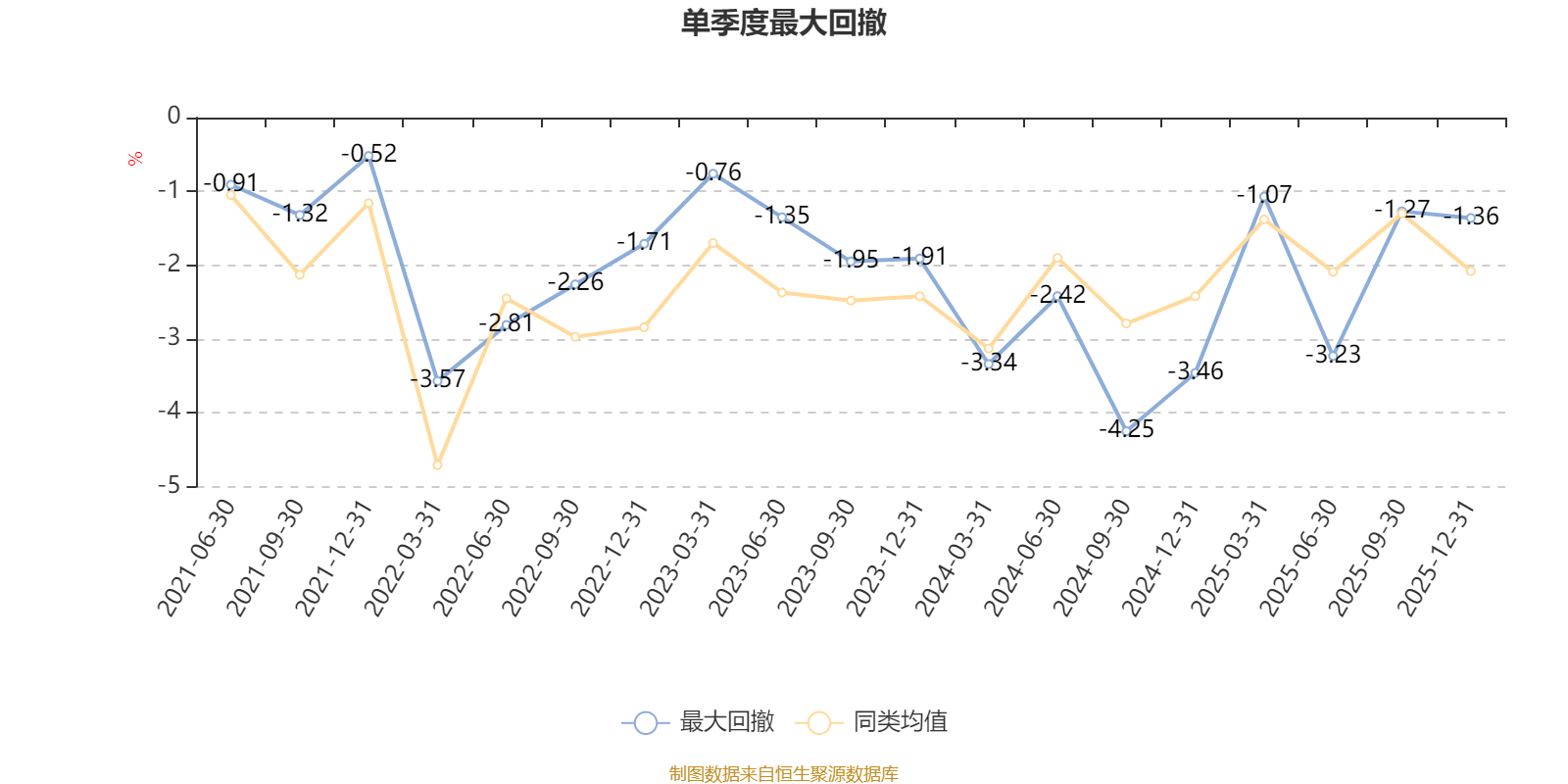 截至1月22日,基金近三年最大回撤為5.72%,同類(lèi)可比基金排名235/527。單季度最大回撤出現(xiàn)在2024年三季度,為4.25%。