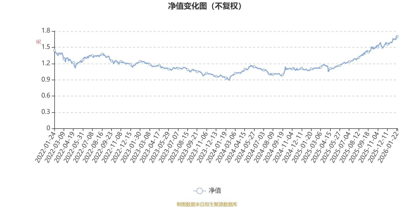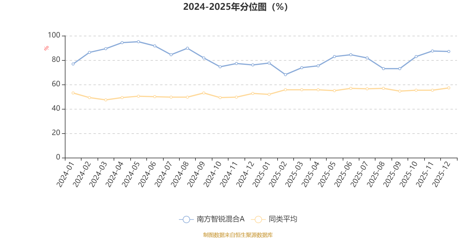 通過所選區(qū)間該基金凈值增長率分位圖,可以觀察該基金與同類基金業(yè)績比較情況。圖為坐標(biāo)原點到區(qū)間內(nèi)某時點的凈值增長率在同類基金中的分位數(shù)。