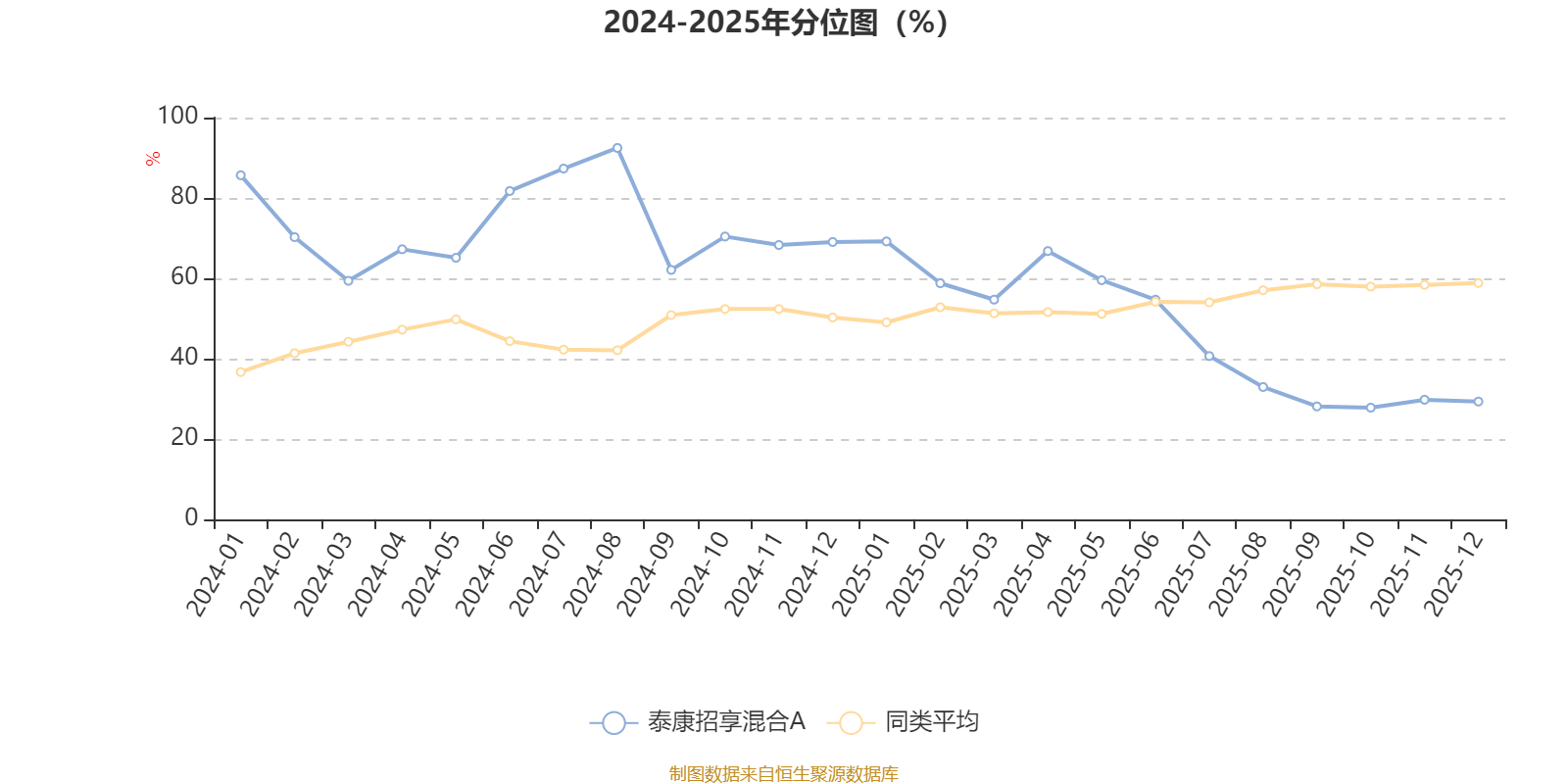 通過所選區(qū)間該基金凈值增長率分位圖,可以觀察該基金與同類基金業(yè)績比較情況。圖為坐標原點到區(qū)間內(nèi)某時點的凈值增長率在同類基金中的分位數(shù)。