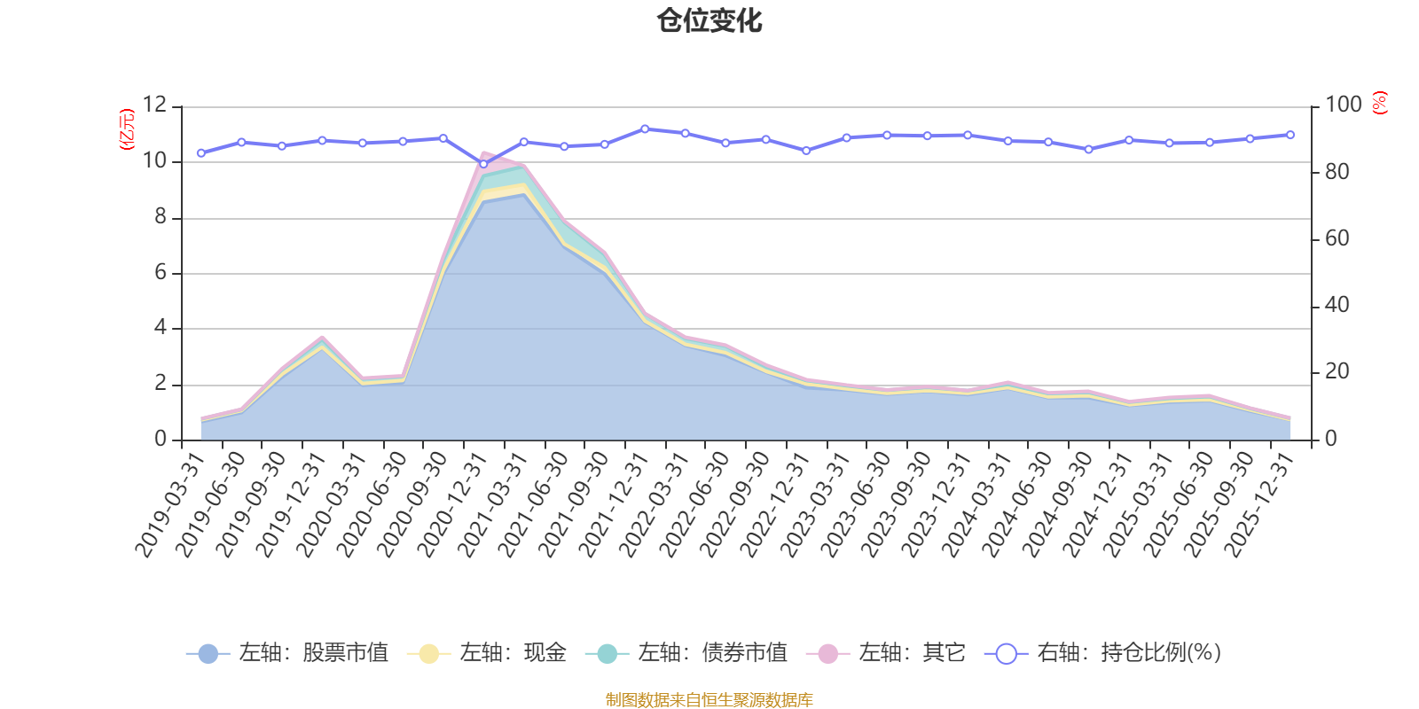 據(jù)定期報告數(shù)據(jù)統(tǒng)計(jì),近三年平均股票倉位為90.04%,同類平均為87.05%。2021年末基金達(dá)到93.24%的最高倉位,2020年末最低,為82.7%。