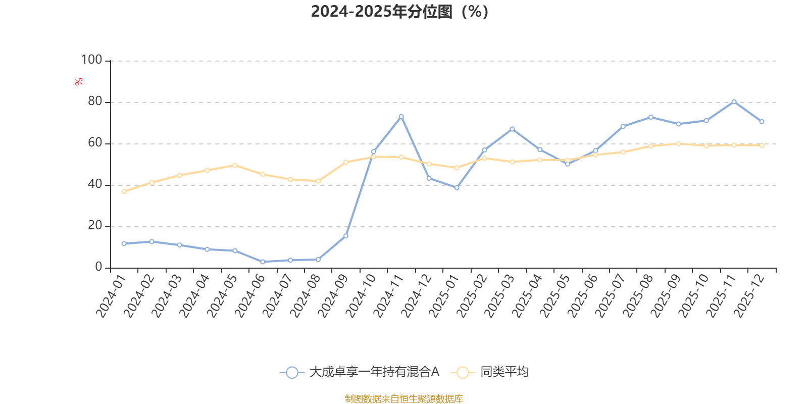 通過所選區(qū)間該基金凈值增長率分位圖,可以觀察該基金與同類基金業(yè)績比較情況。圖為坐標原點到區(qū)間內(nèi)某時點的凈值增長率在同類基金中的分位數(shù)。