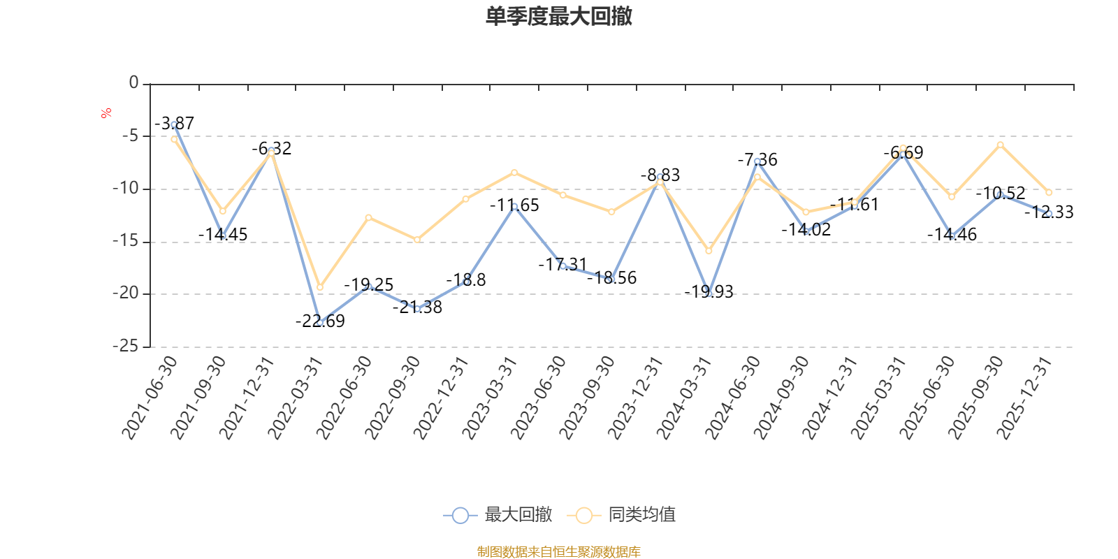 截至1月22日,基金近三年最大回撤為41.03%,同類可比基金排名254/378。單季度最大回撤出現(xiàn)在2022年一季度,為22.69%。