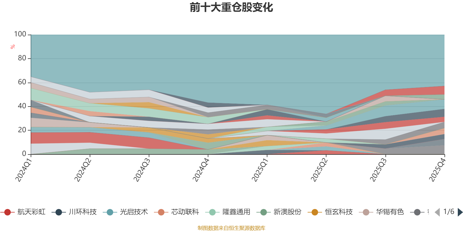 截至2025年四季度末,基金十大重倉股分別是中航沈飛、睿創(chuàng)微納、華秦科技、航發(fā)動力、中航西飛、三角防務(wù)、菲利華、國睿科技、國博電子、航發(fā)控制。