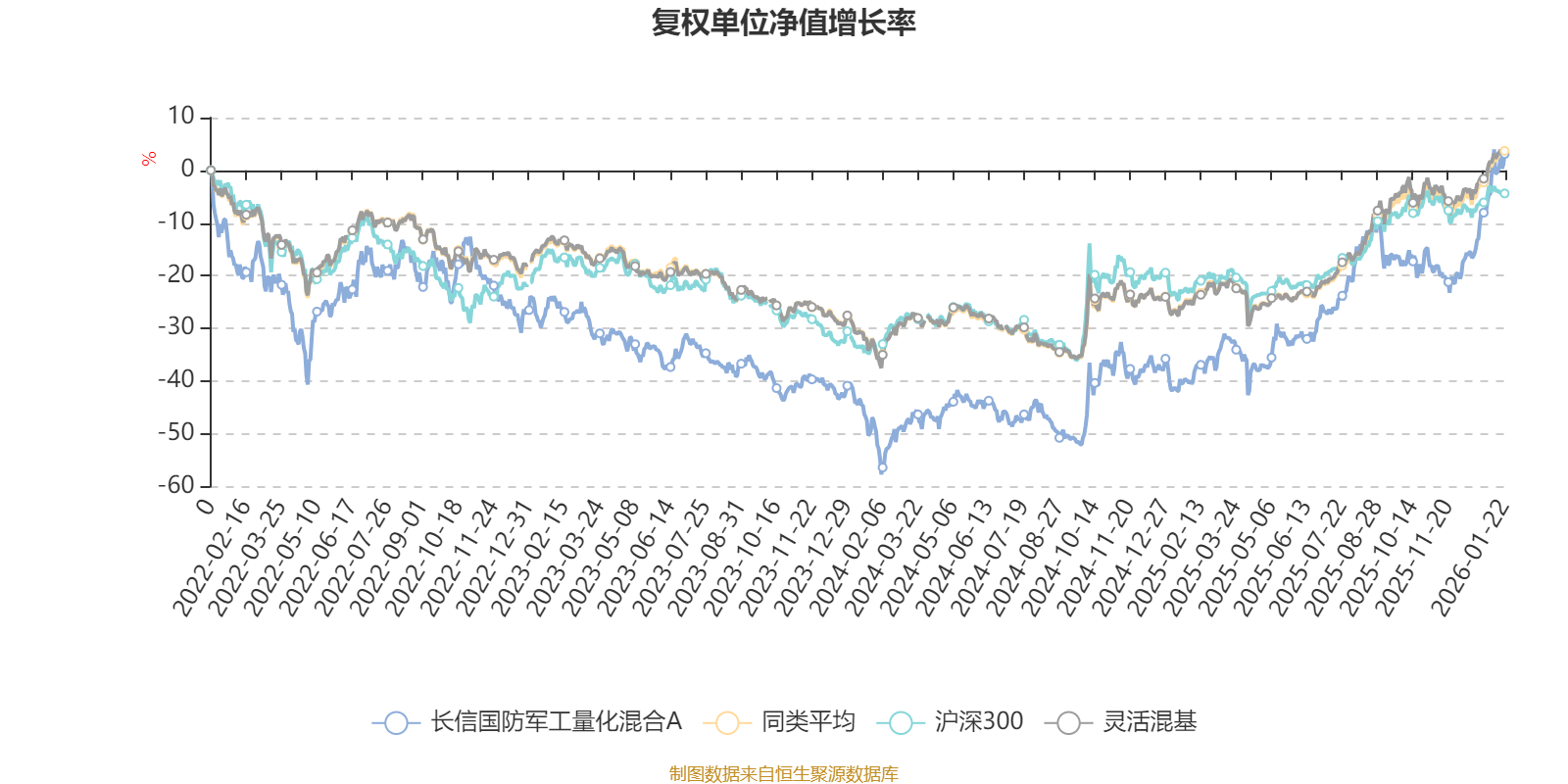 截至1月22日,長信國防軍工量化混合A近三個(gè)月復(fù)權(quán)單位凈值增長率為27.28%,位于同類可比基金50/1286;近半年復(fù)權(quán)單位凈值增長率為35.27%,位于同類可比基金331/1286;近一年復(fù)權(quán)單位凈值增長率為71.81%,位于同類可比基金108/1286;近三年復(fù)權(quán)單位凈值增長率為39.62%,位于同類可比基金269/1286。
