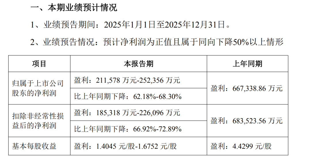 根據(jù)業(yè)績(jī)預(yù)告,洋河股份預(yù)計(jì)2025年實(shí)現(xiàn)歸母凈利潤(rùn)21.16億元-25.24億元,同比下降62.18%-68.30%。
