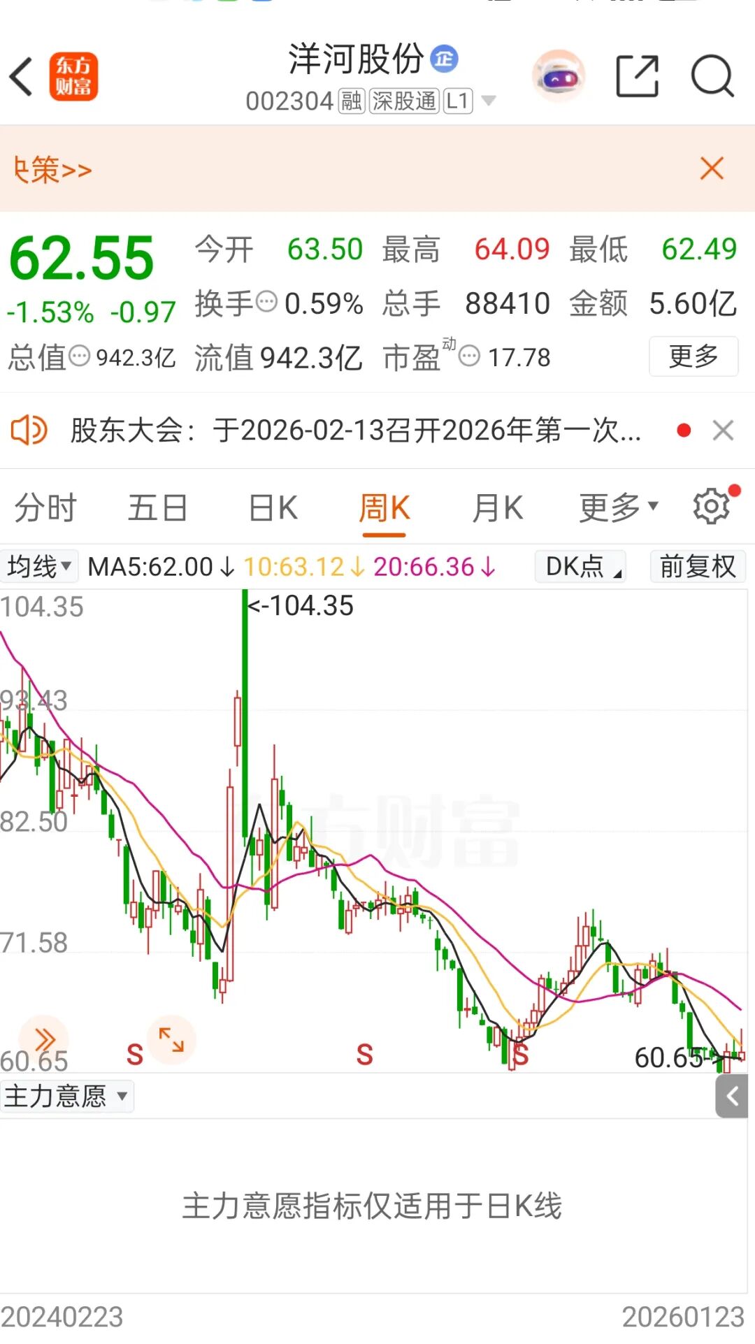 截至1月23日收盤(pán),洋河股份報(bào)62.55元/股,總市值為942億元。(完)