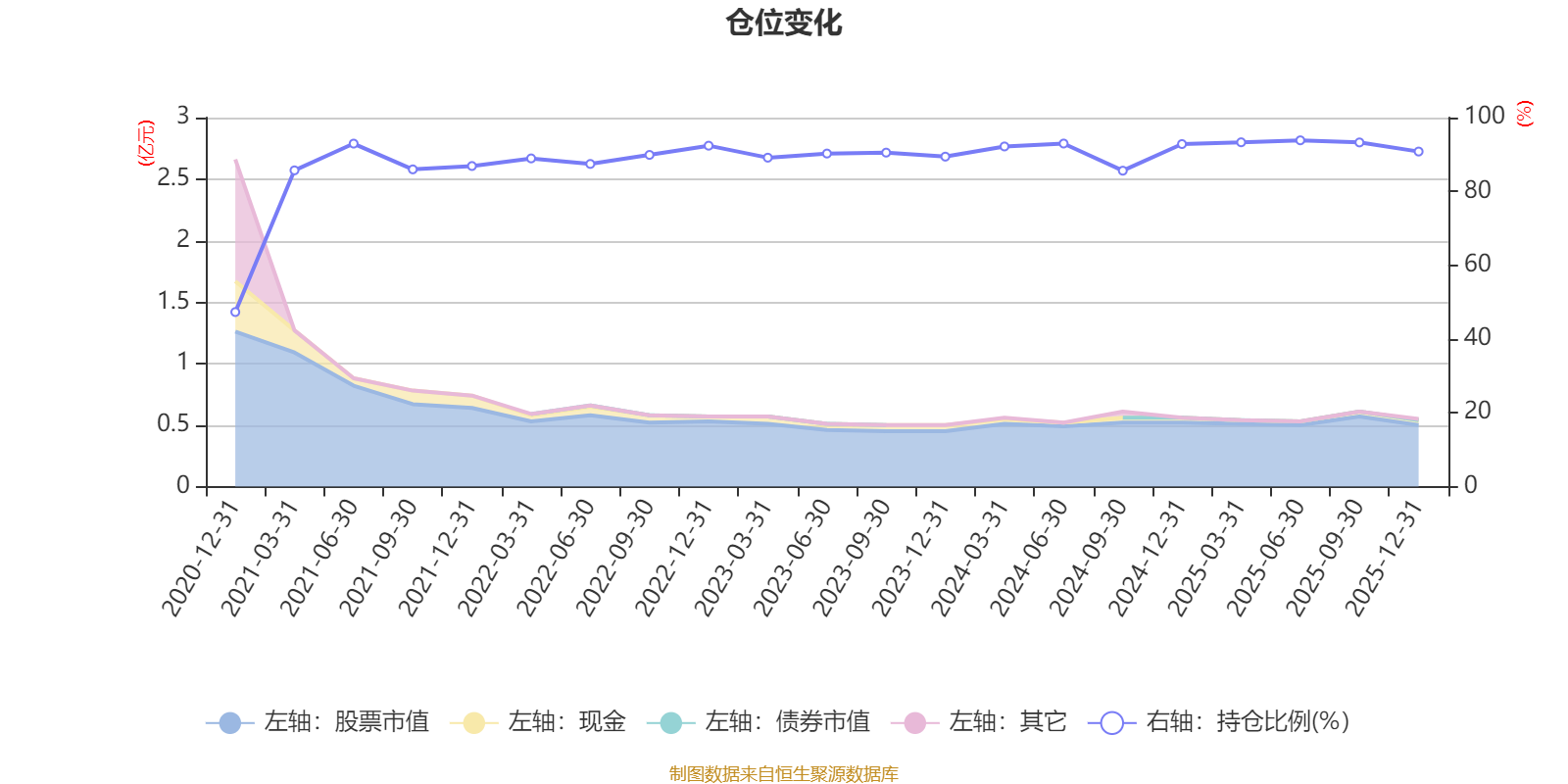 據(jù)定期報(bào)告數(shù)據(jù)統(tǒng)計(jì),近三年平均股票倉(cāng)位為91.18%,同類平均為88.34%。2025年上半年末基金達(dá)到93.84%的最高倉(cāng)位,2020年末最低,為47.3%。