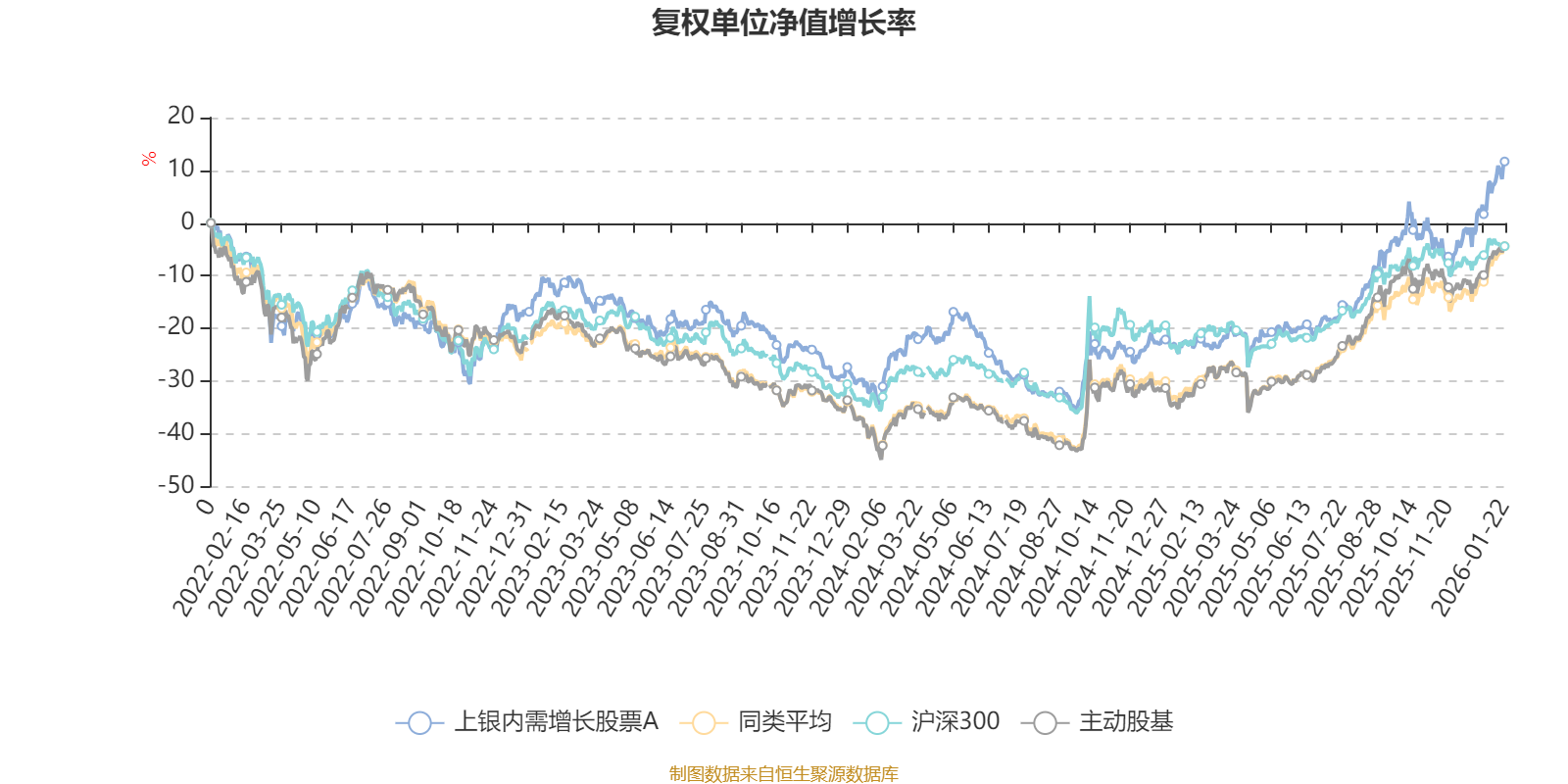 截至1月22日,上銀內(nèi)需增長(zhǎng)股票A近三個(gè)月復(fù)權(quán)單位凈值增長(zhǎng)率為14.98%,位于同類可比基金34/121;近半年復(fù)權(quán)單位凈值增長(zhǎng)率為32.25%,位于同類可比基金38/121;近一年復(fù)權(quán)單位凈值增長(zhǎng)率為45.22%,位于同類可比基金46/119;近三年復(fù)權(quán)單位凈值增長(zhǎng)率為25.25%,位于同類可比基金39/89。