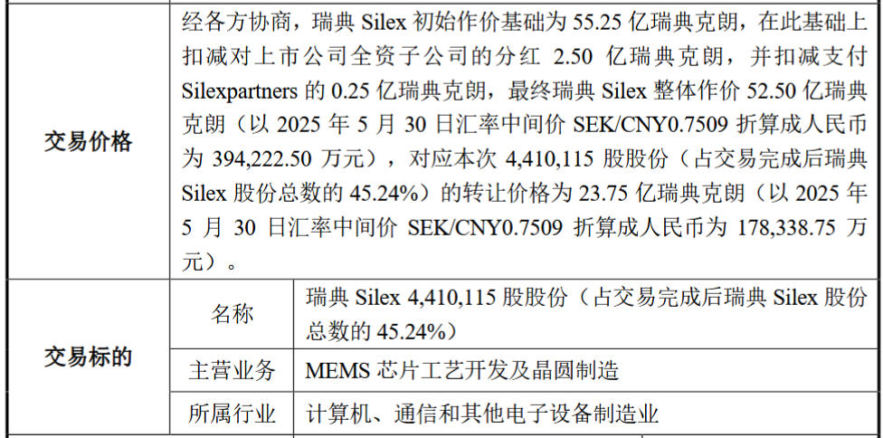 賽微電子此前發(fā)布公告稱,以17.83億元價(jià)格出售瑞典子公司Silex Microsystems AB(下稱瑞典Silex)45.24%股權(quán),為公司帶來了巨額現(xiàn)金;但交易完成后,賽微電子雖仍保留瑞典Silex 45.24%股份,但其先進(jìn)的MEMS(Micro-Electro-Mechanical System,微機(jī)電系統(tǒng))代工業(yè)務(wù)也由此被剝離出了財(cái)務(wù)報(bào)表。