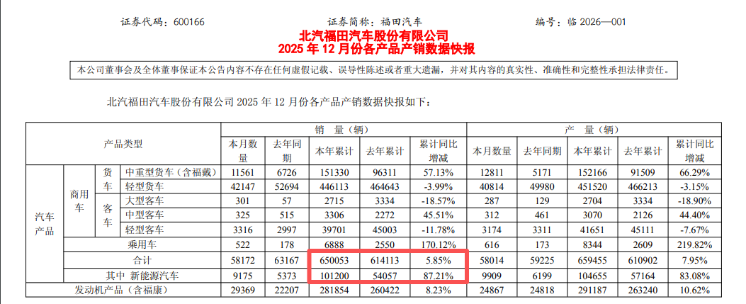 2025年,北汽集團的整車銷量達175.20萬輛,同比增長5.60%,其中福田汽車的整車銷量達65.01萬輛,同比增長5.85%。