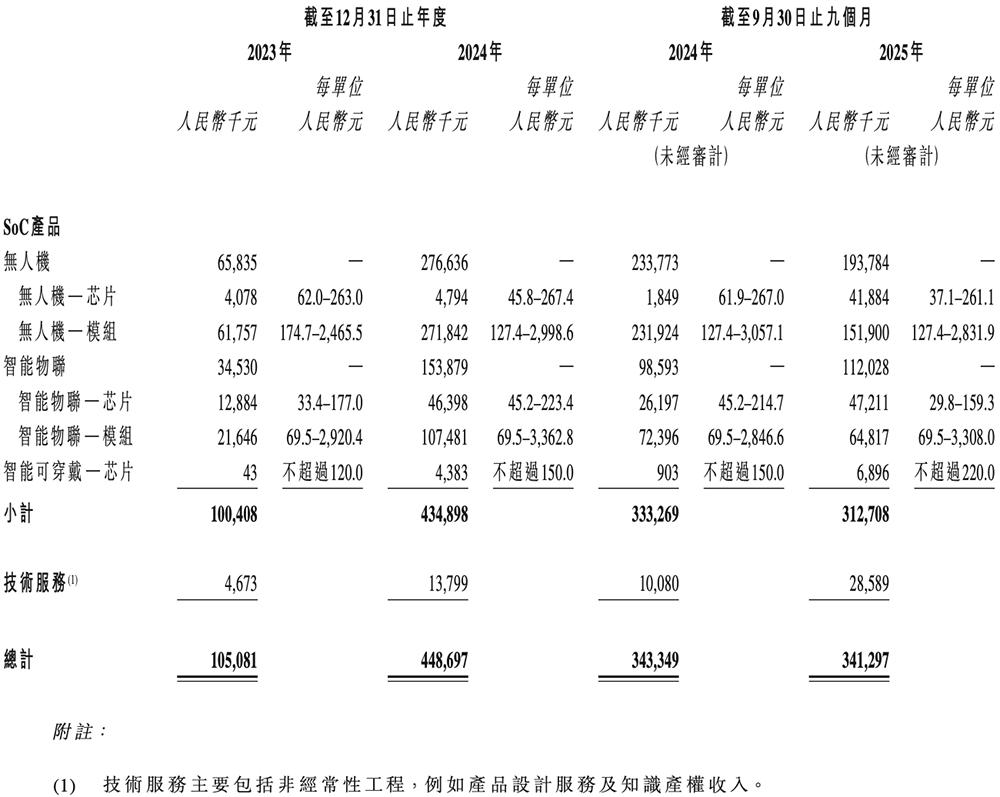 無人機(jī)業(yè)務(wù)是核心支柱:2024年貢獻(xiàn)營收2.77億元,占總營收的61.7%;2025年前三季度貢獻(xiàn)1.94億元,占比57%??嵝疚㈦娮右?.0%的市場(chǎng)份額位列中國無人機(jī)視覺處理AI SoC市場(chǎng)第三。