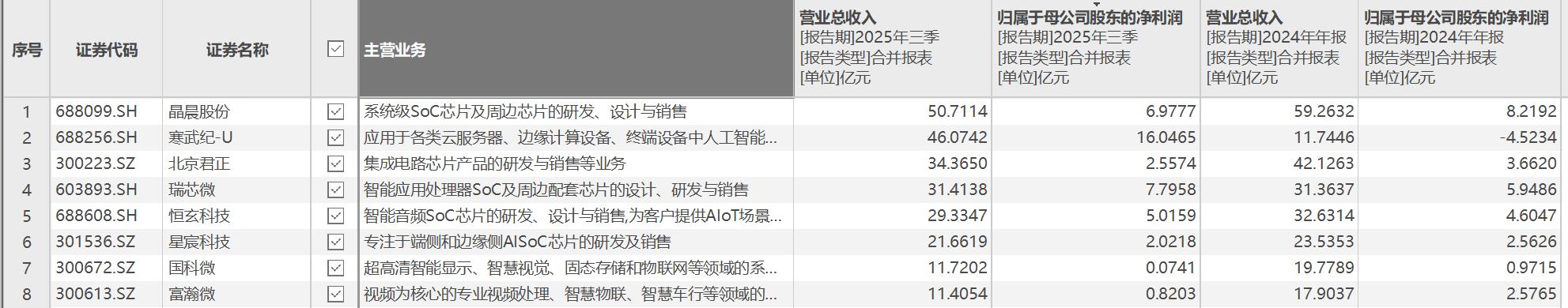 2024年,酷芯微以1.3%的市場(chǎng)份額位列中國視覺處理AI SoC市場(chǎng)第八,雖在無人機(jī)細(xì)分領(lǐng)域躋身前三,但與頭部企業(yè)規(guī)模差距巨大。2025年前九個(gè)月,晶晨股份營收50.71億元,是酷芯微的14.9倍;星宸科技同期凈利潤2.02億元,與其虧損額形成鮮明對(duì)比。
