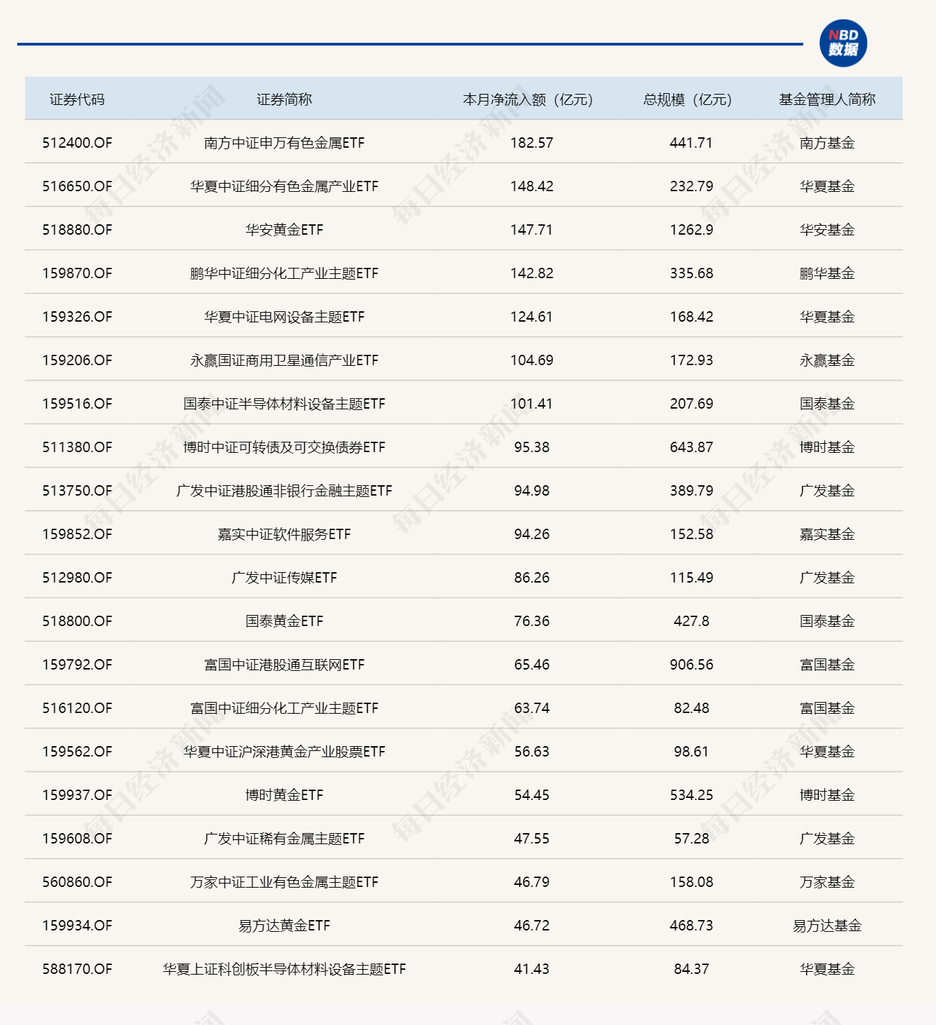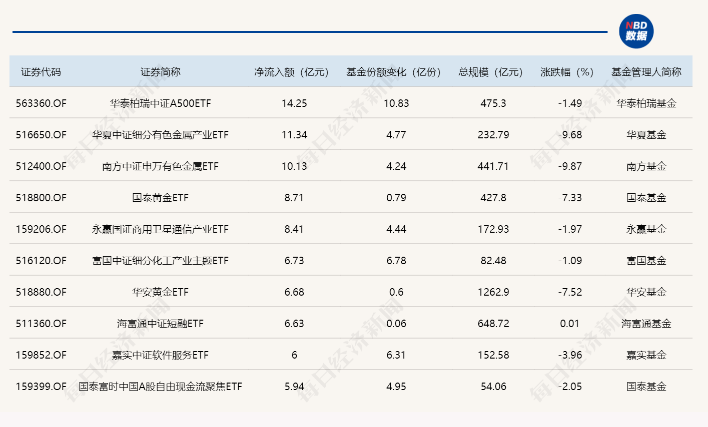 ETF規(guī)模速報 | A500ETF華泰柏瑞和兩只有色金屬ETF,上周五凈流入額均超10億元