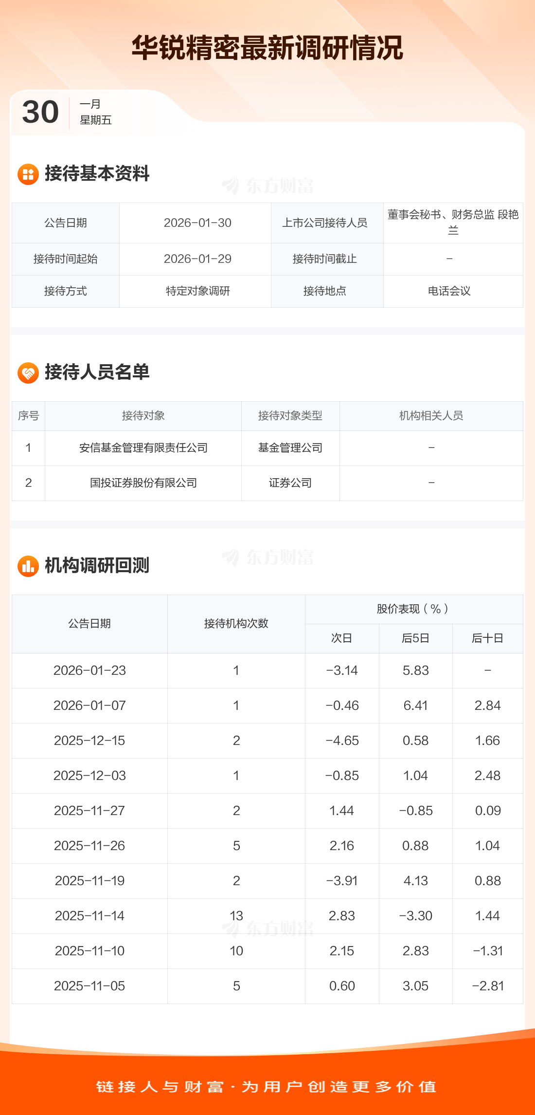 調(diào)研快報(bào):華銳精密接待安信基金管理有限責(zé)任公司等2家機(jī)構(gòu)調(diào)研
