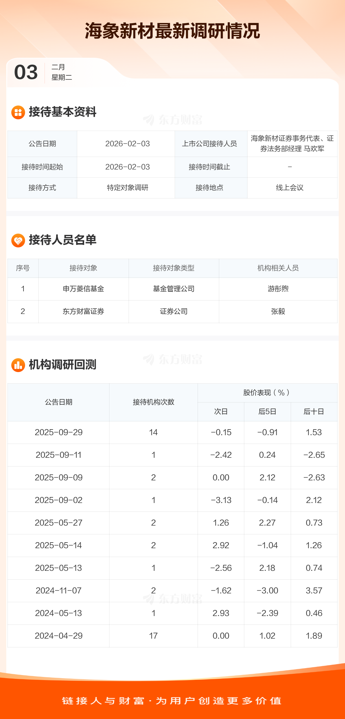 【調(diào)研快報】海象新材接待申萬菱信基金等2家機構(gòu)調(diào)研