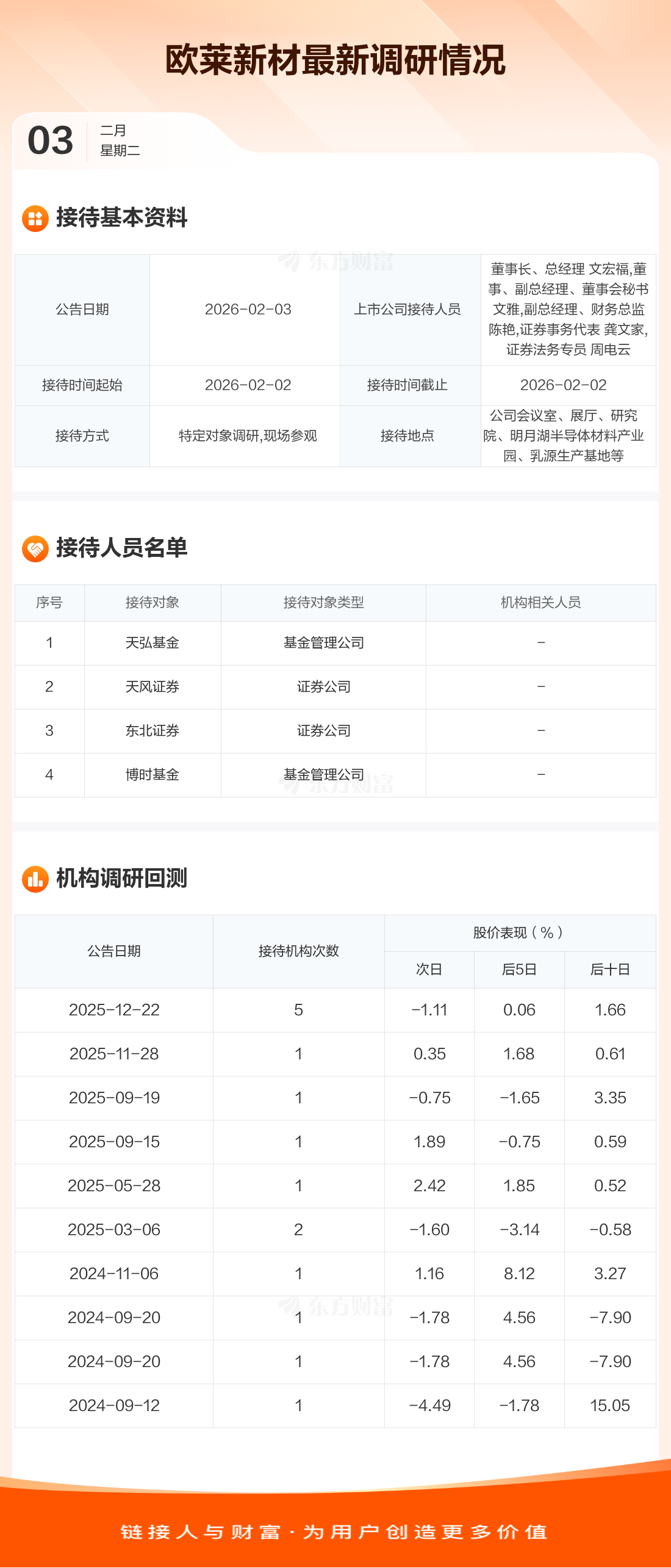 【調(diào)研快報(bào)】歐萊新材接待天弘基金等4家機(jī)構(gòu)調(diào)研