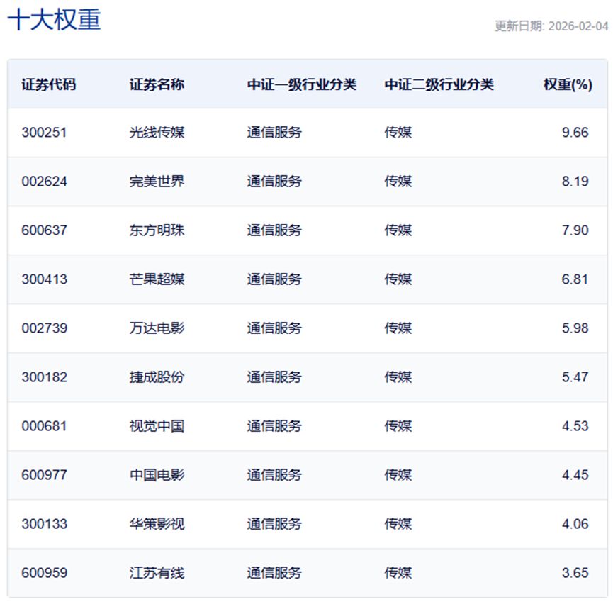 中證影視主題指數(shù)主要權(quán)重股