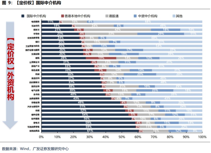 中資具備定價(jià)權(quán):電信服務(wù)、石油石化、煤炭、半導(dǎo)體、銀行等板塊。