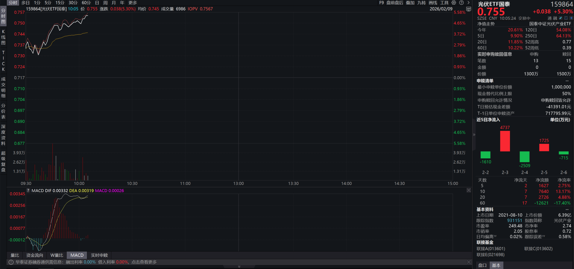太空光伏概念再度活躍,光伏ETF國泰(159864)強(qiáng)勢(shì)上漲超5%