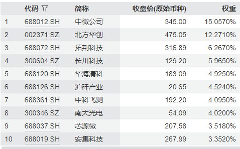 中證半導(dǎo)體材料設(shè)備主題指數(shù)主要權(quán)重股