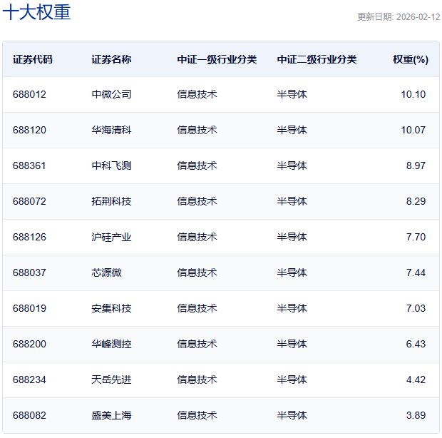 上證科創(chuàng)板半導(dǎo)體材料設(shè)備主題指數(shù)主要權(quán)重股