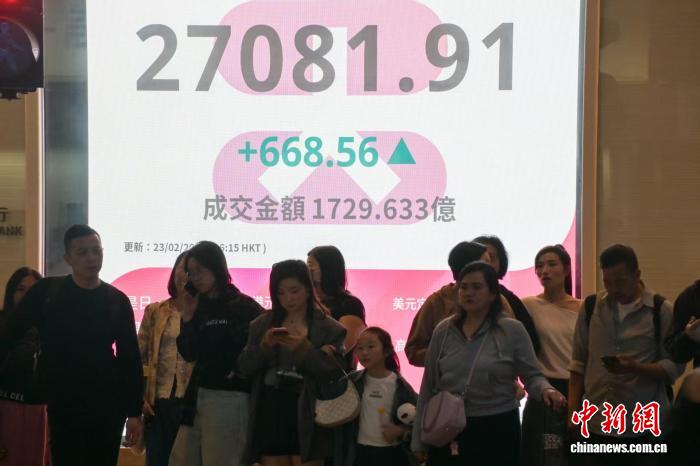 2月23日,恒生指數(shù)漲2.53%,報(bào)27081.91點(diǎn),上漲668.56點(diǎn)。中新社記者陳永諾攝
