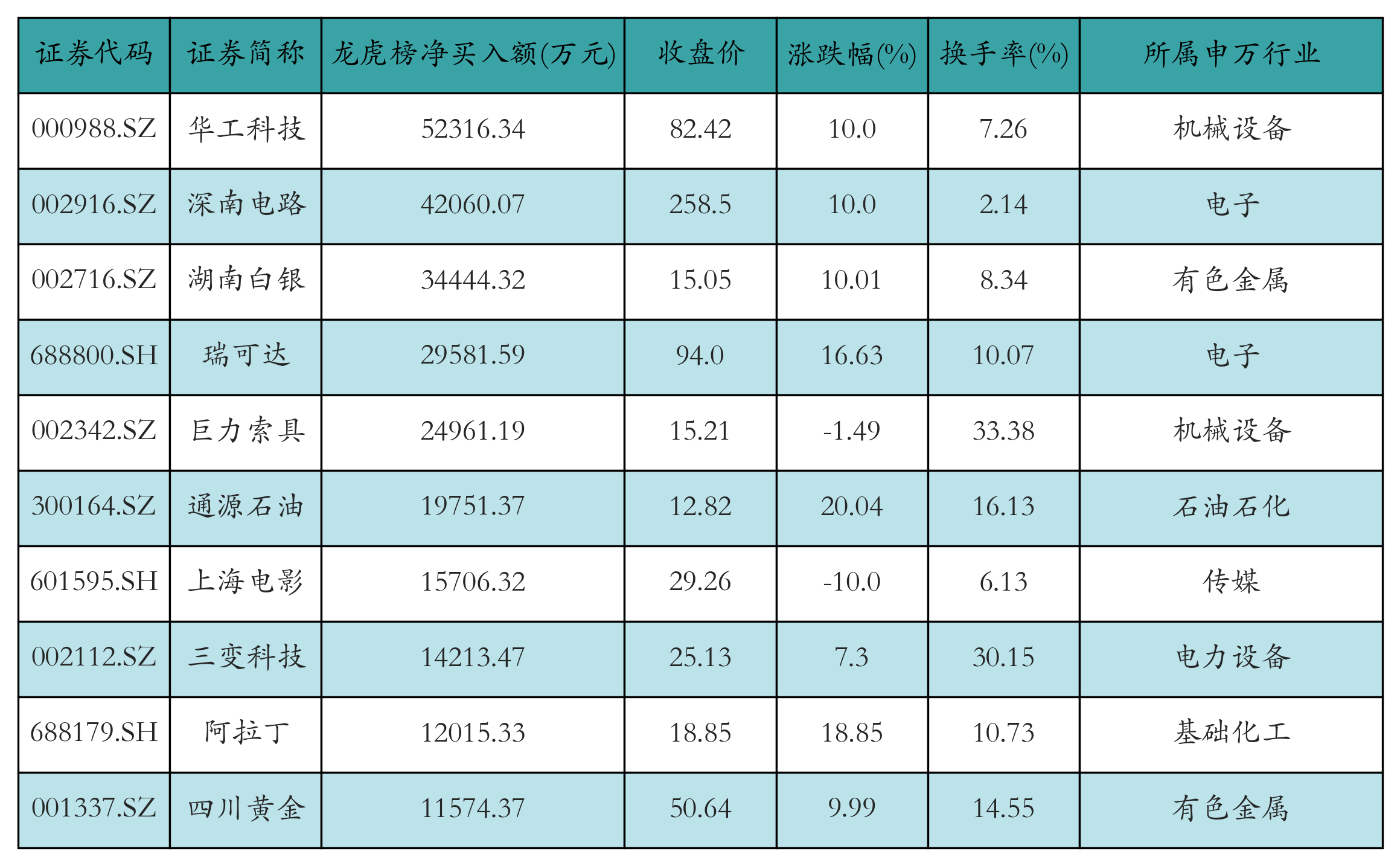四、龍虎榜情況
