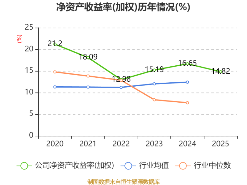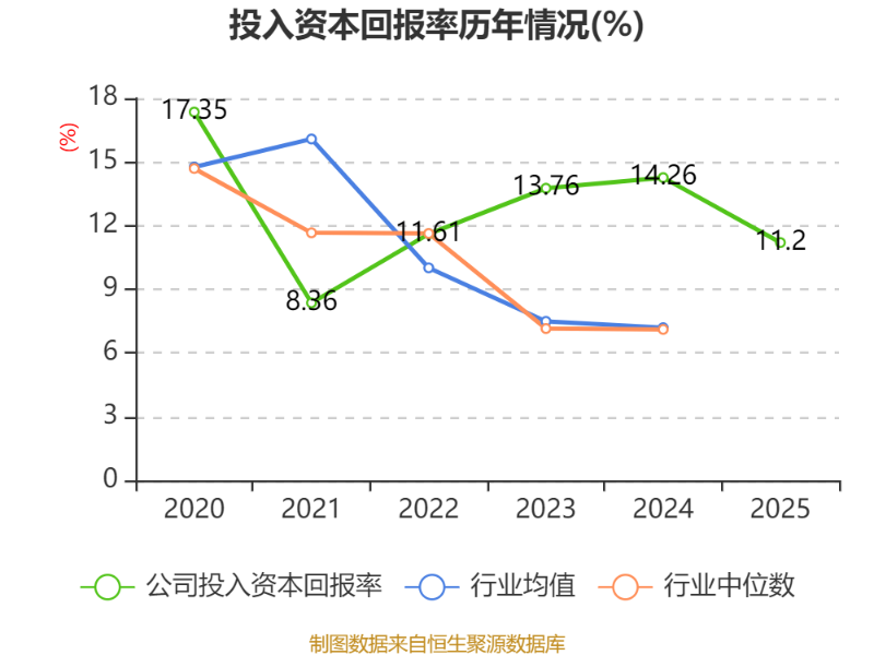 數(shù)據(jù)顯示,2025年公司加權(quán)平均凈資產(chǎn)收益率為14.82%,較上年同期下降1.83個(gè)百分點(diǎn)。公司2025年投入資本回報(bào)率為11.2%,較上年同期下降3.06個(gè)百分點(diǎn)。
