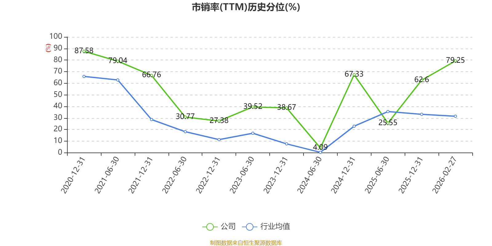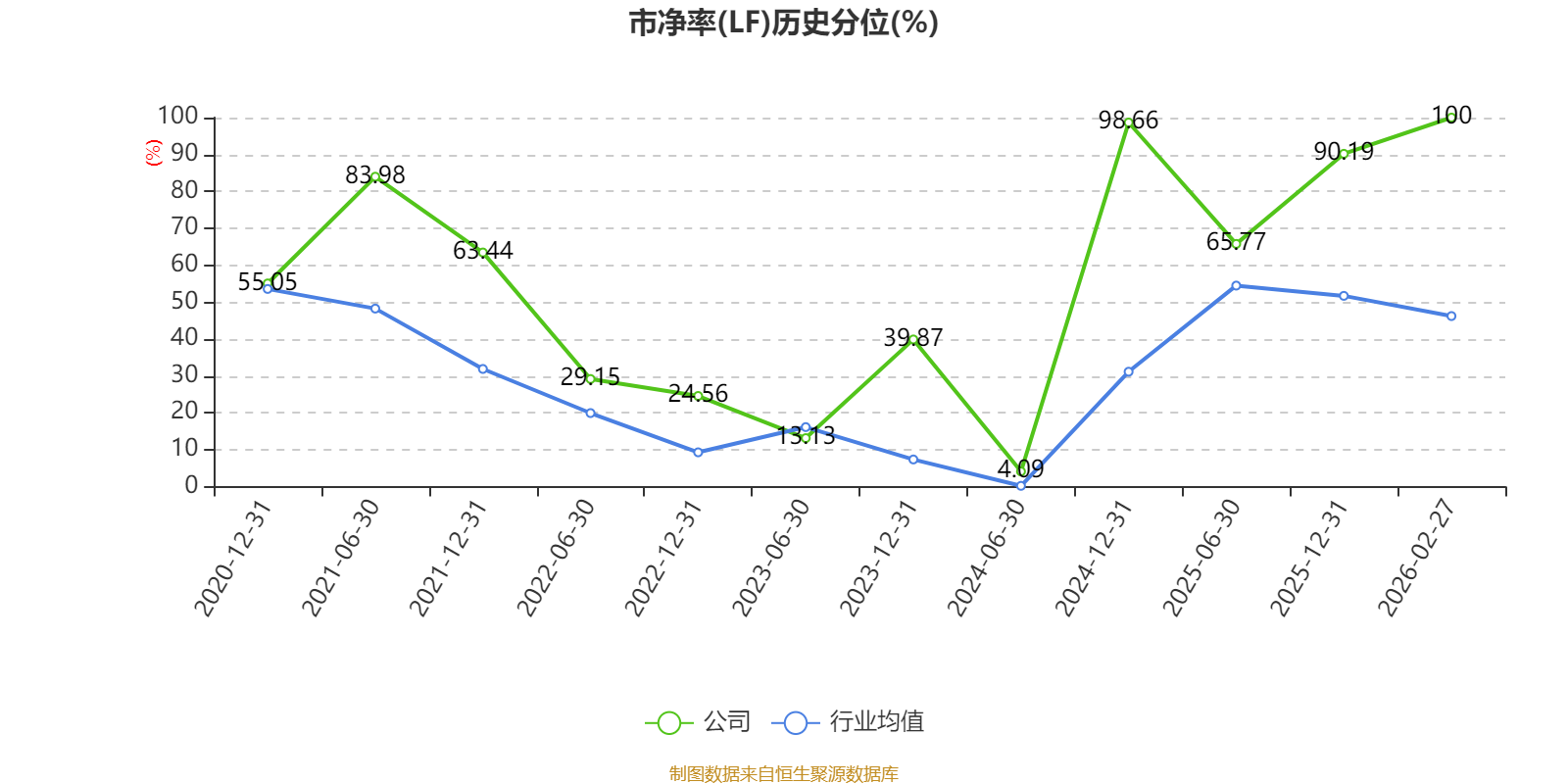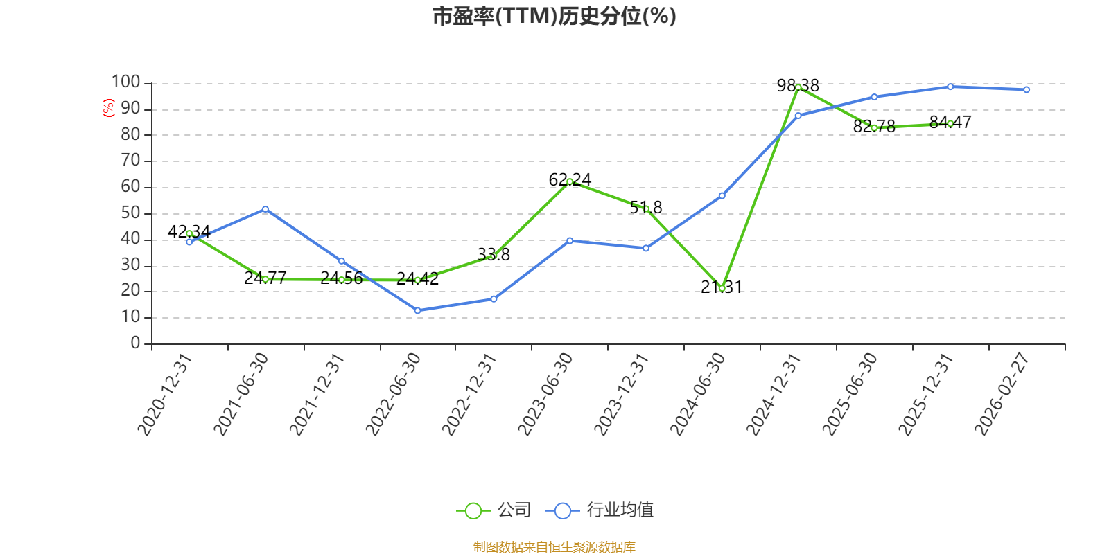 市盈率、市凈率為負(fù)時,不顯示當(dāng)期分位數(shù),會導(dǎo)致折線圖中斷。