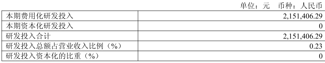 2025年全年,公司研發(fā)投入金額為215.14萬元,同比下降1.59%;研發(fā)投入占營業(yè)收入比例為0.23%,相比上年同期上升0.01個百分點。此外,公司全年研發(fā)投入資本化率為0%。