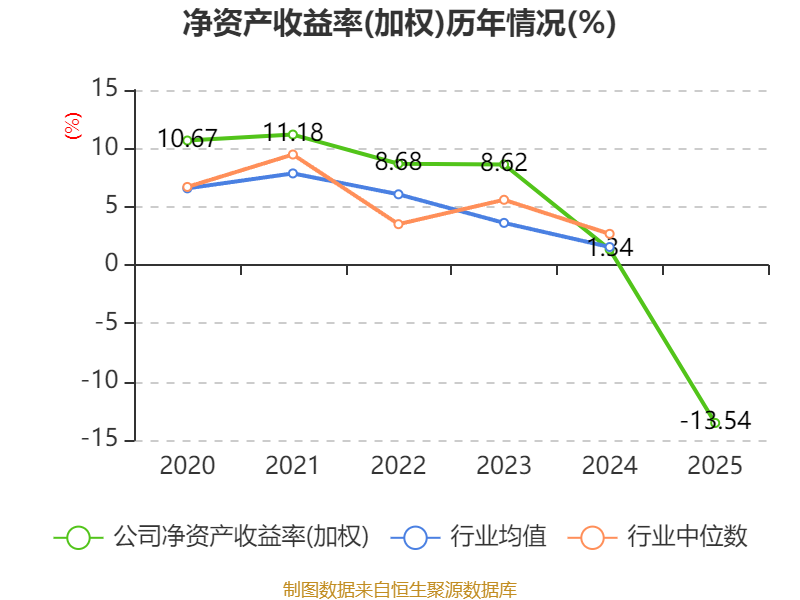 數(shù)據(jù)顯示,2025年公司加權(quán)平均凈資產(chǎn)收益率為-13.54%,較上年同期下降14.88個百分點。公司2025年投入資本回報率為-0.25%,較上年同期上升0.63個百分點。