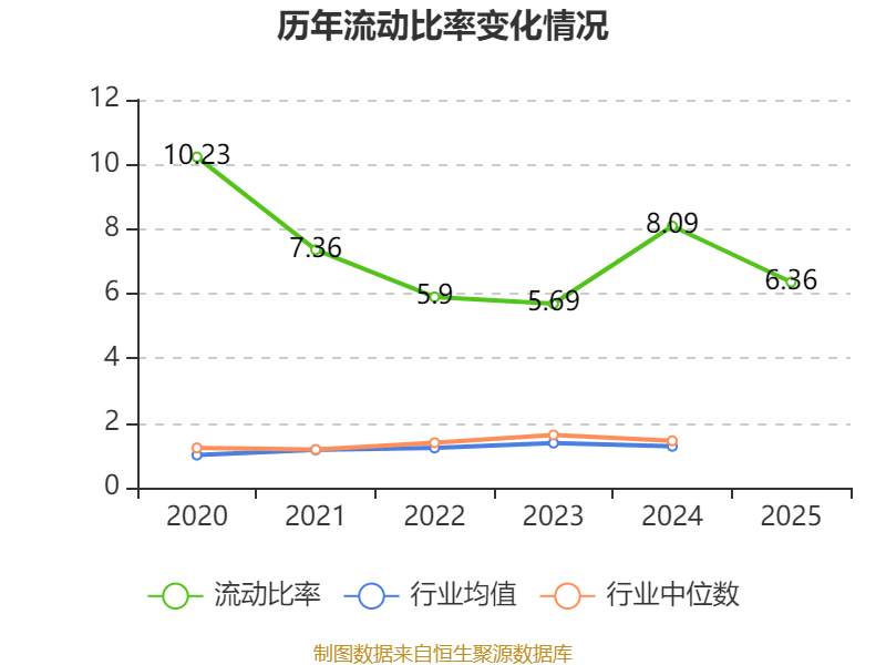 2025年,公司流動(dòng)比率為6.36,速動(dòng)比率為6.11。