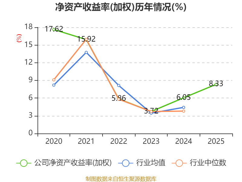 數(shù)據(jù)顯示,2025年公司加權(quán)平均凈資產(chǎn)收益率為8.33%,較上年同期上升2.28個(gè)百分點(diǎn)。公司2025年投入資本回報(bào)率為7.71%,較上年同期上升3.63個(gè)百分點(diǎn)。