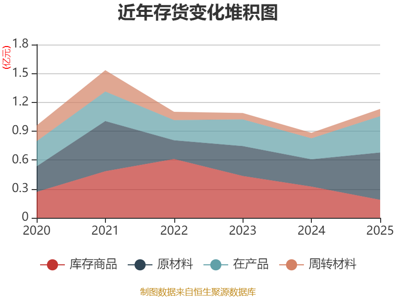 從存貨變動(dòng)來(lái)看,截至2025年末,公司存貨賬面價(jià)值為1.13億元,占凈資產(chǎn)的2.45%,較上年末增加2492.57萬(wàn)元。其中,存貨跌價(jià)準(zhǔn)備為2416.15萬(wàn)元,計(jì)提比例為17.61%。