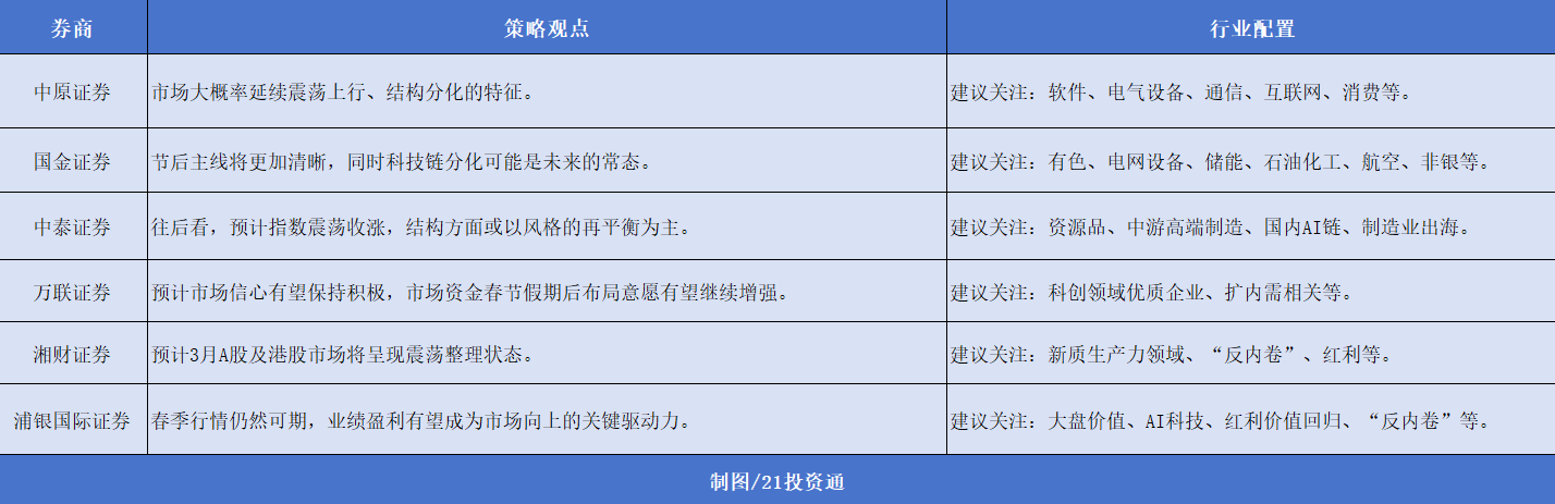 縱觀這些報(bào)告,多家機(jī)構(gòu)認(rèn)為春節(jié)后市場(chǎng)交易熱度將季節(jié)性回升,3月市場(chǎng)大概率延續(xù)震蕩上行。