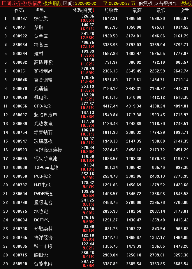 轉(zhuǎn)眼間,2026年2月行情畫上了句號(hào)。剛剛過去的2月份,A股在經(jīng)歷了月初的驚心動(dòng)魄后穩(wěn)健攀升,憑借中小綜指、深證綜指創(chuàng)下近11年來的新高,使得衡量整個(gè)A股的均價(jià)也達(dá)到了近11年來的最大值。而盤面,則進(jìn)一步呈現(xiàn)出高度活躍的春暖花開局面。