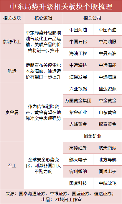 (原標(biāo)題:中東局勢(shì)升級(jí),A股將如何應(yīng)對(duì)?關(guān)注四大板塊)