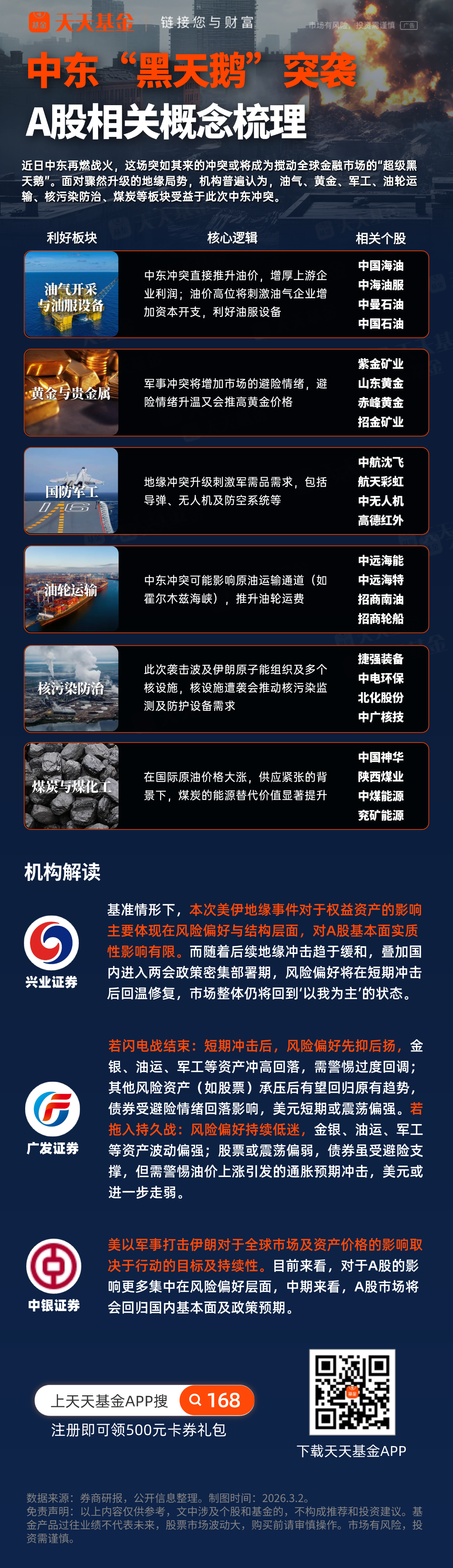 機(jī)構(gòu)普遍認(rèn)為,油氣、黃金、軍工、油輪運(yùn)輸、核污染防治、煤炭等板塊受益于此次中東沖突。