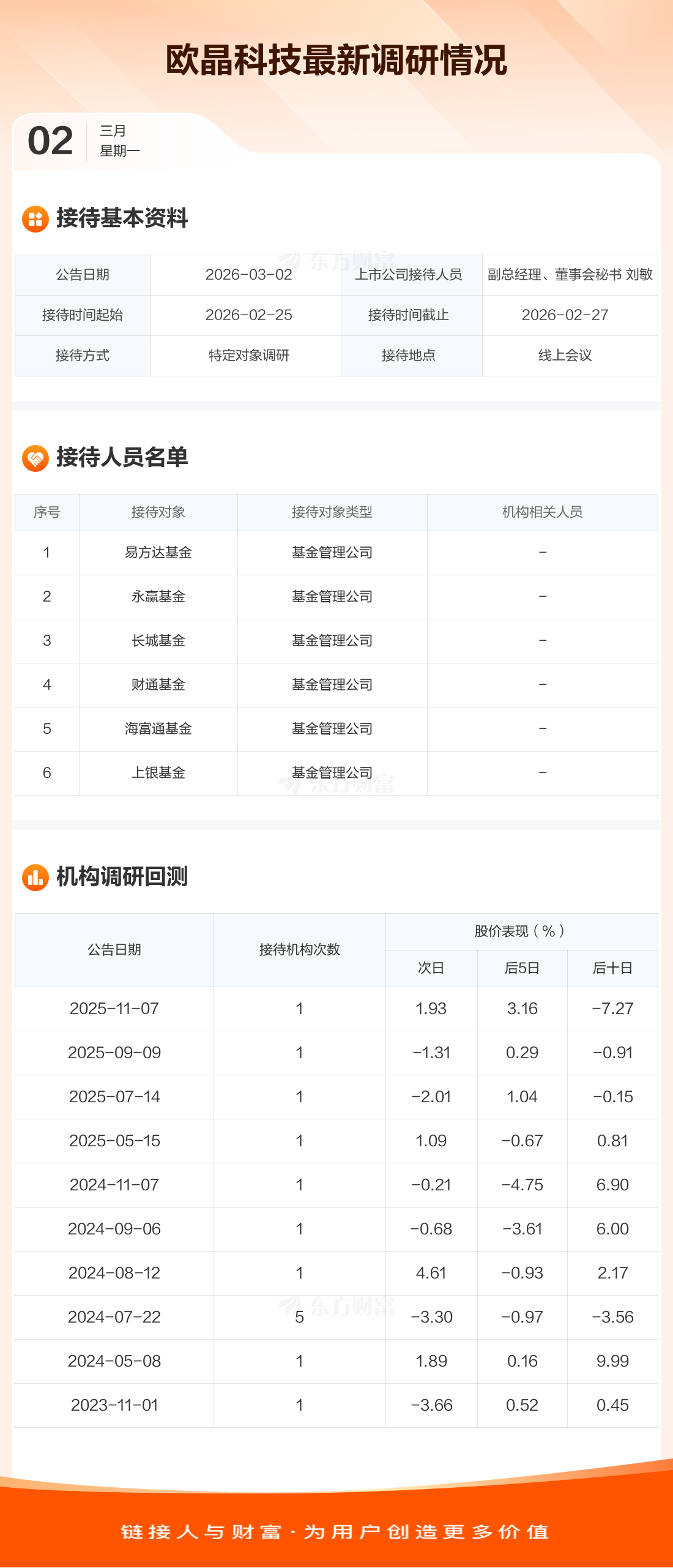 【調(diào)研快報(bào)】歐晶科技接待易方達(dá)基金等6家機(jī)構(gòu)調(diào)研