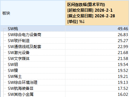 另據(jù)wind統(tǒng)計(jì),今年2月,包括章源鎢業(yè)、中鎢高新等在內(nèi)的申萬鎢板塊漲幅達(dá)到49.46%,位居同期A股所有細(xì)分行業(yè)首位。