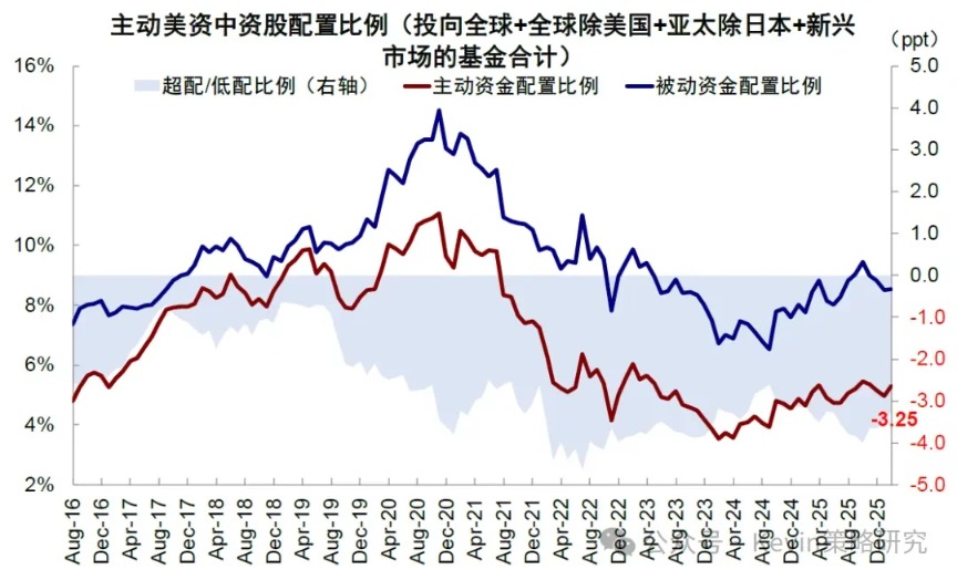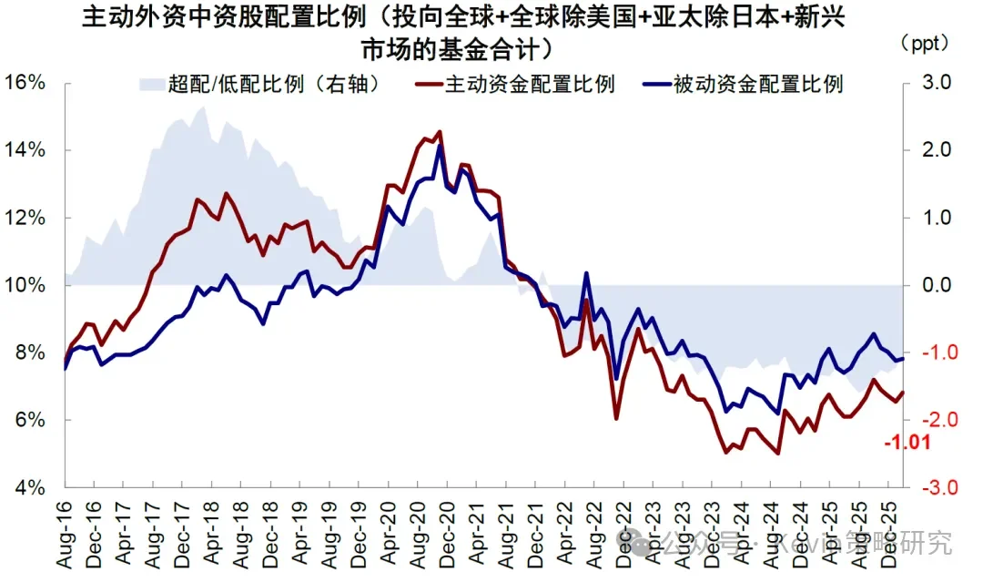 圖表:結(jié)構(gòu)上,主動(dòng)美資是低配中國(guó)權(quán)益資產(chǎn)的主要資金