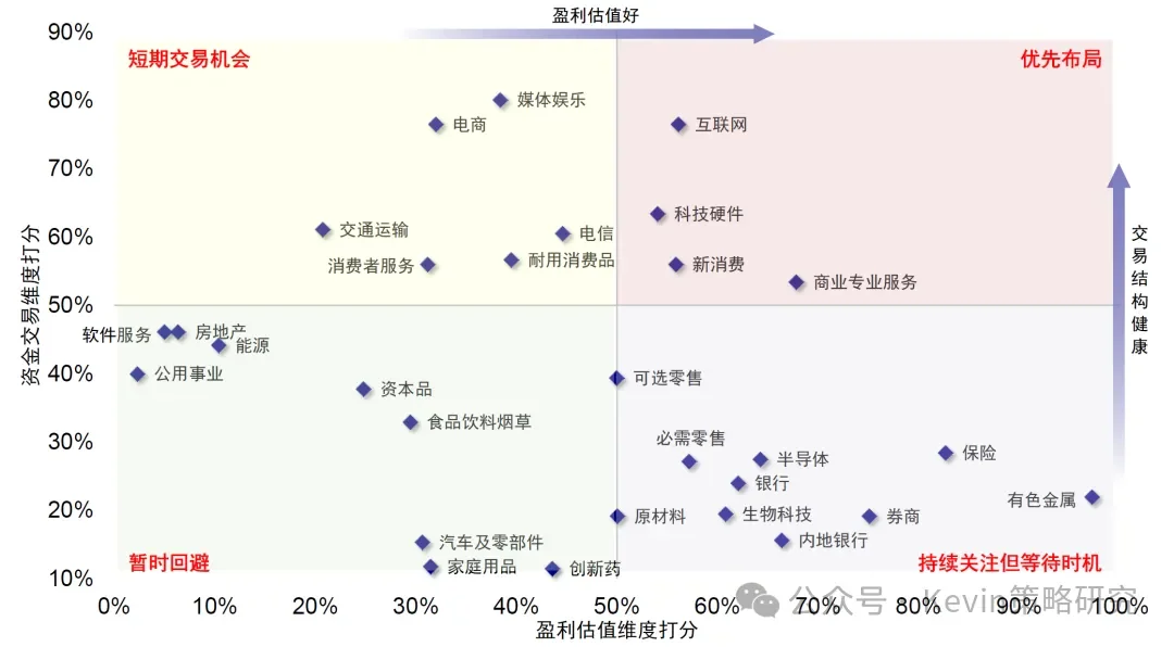 圖表:基于基本面和交易維度,短期建議關(guān)注互聯(lián)網(wǎng)、科技硬件、新消費(fèi)