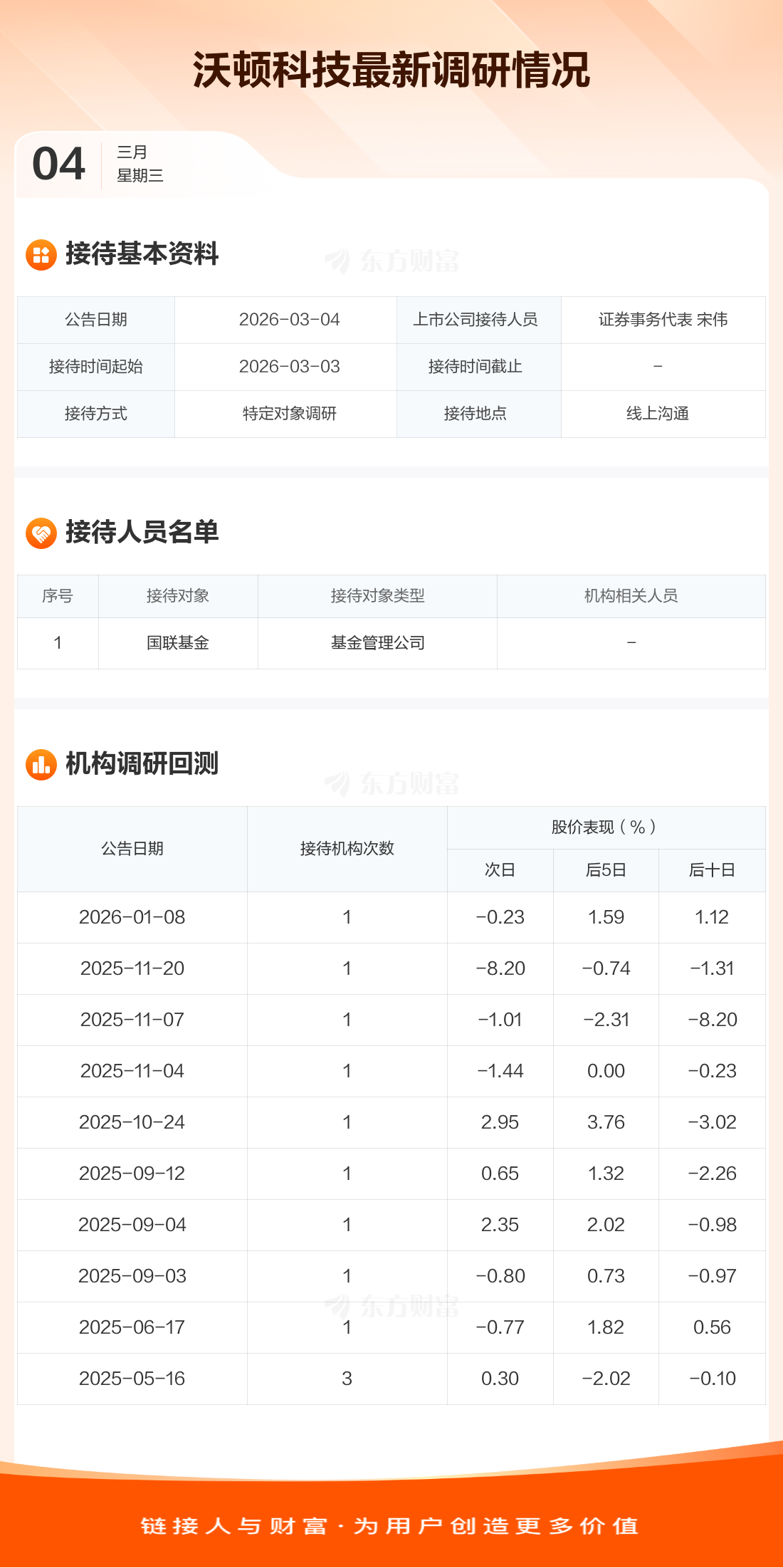 【調(diào)研快報(bào)】沃頓科技接待國(guó)聯(lián)基金等1家機(jī)構(gòu)調(diào)研